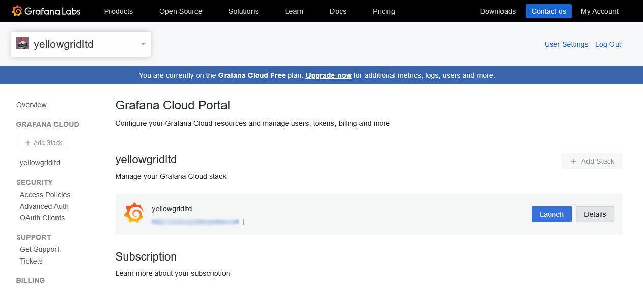 To get started, go to Grafana, create a Grafana Cloud Account (Free Tier), and click launch on your free Grafana cloud stack.