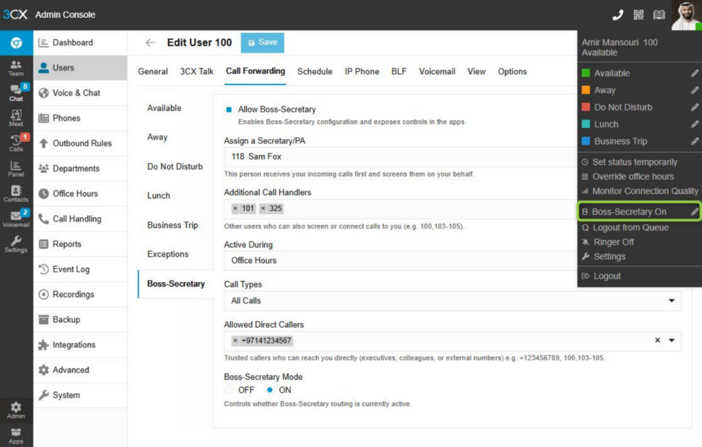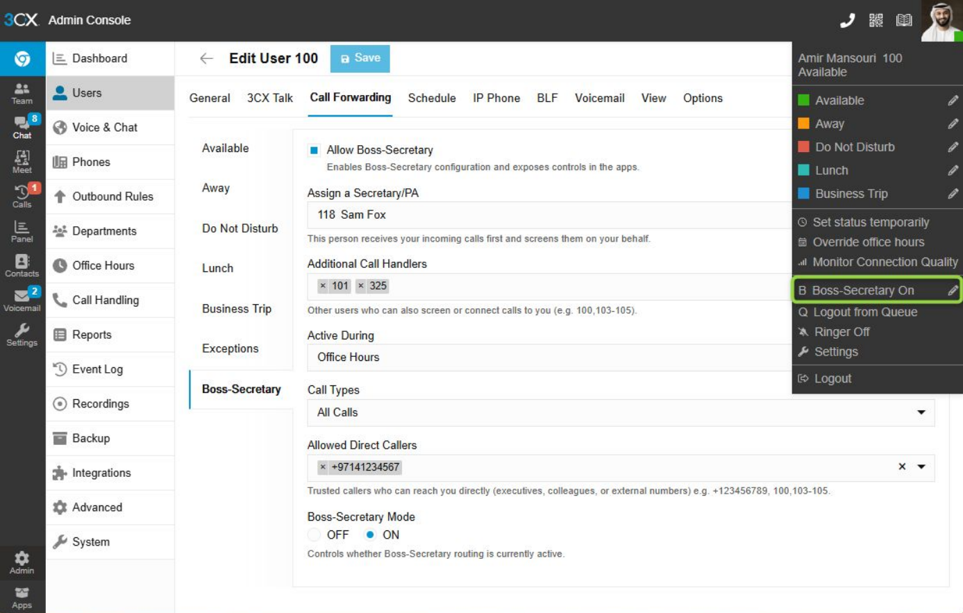 ● Allow selected Callers to bypass Secretary